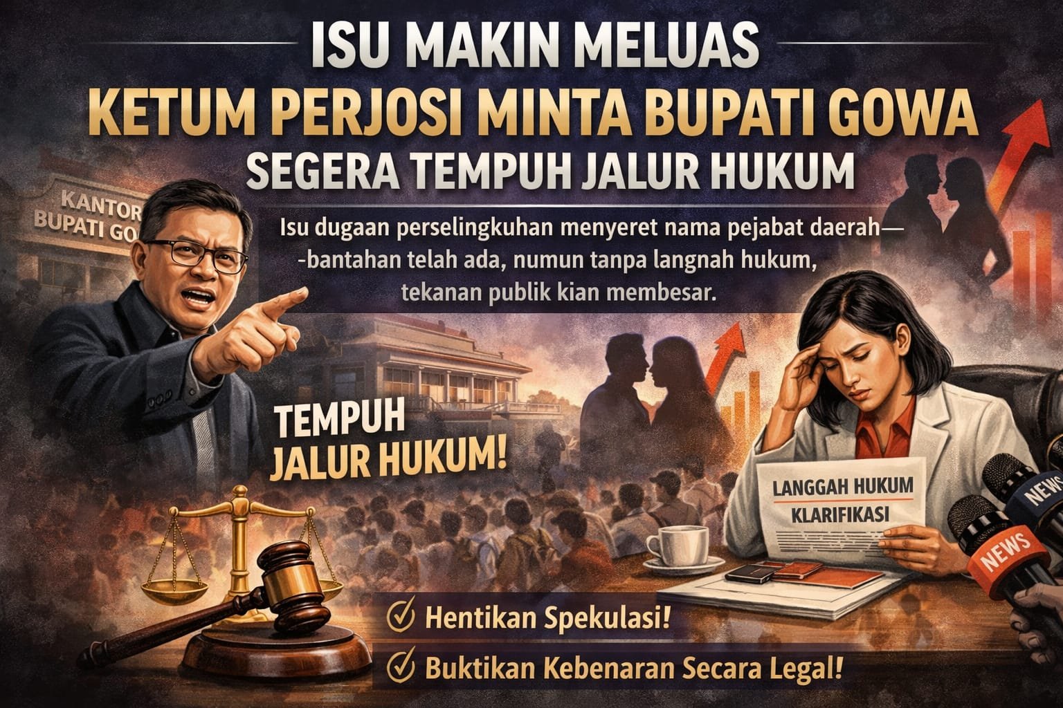 Makassar, Isu dugaan perselingkuhan menyeret nama pejabat daerah—bantahan telah ada, namun tanpa langkah hukum, tekanan publik kian membesar.