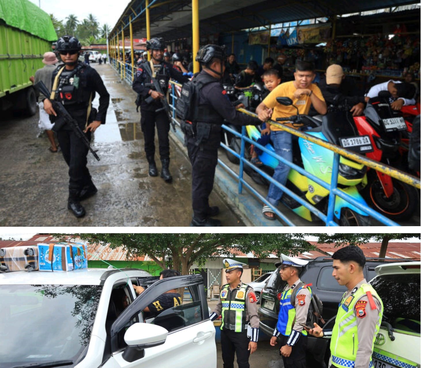 Selain pengamanan di area pelabuhan, personel juga melakukan pemeriksaan terhadap sejumlah kapal ferry dan speed boat yang akan berlayar. Pemeriksaan tersebut meliputi kelengkapan alat keselamatan seperti jaket pelampung (life jacket) serta dokumen kapal, guna memastikan keselamatan pelayaran di tengah kondisi cuaca yang dinamis di perairan Maluku Utara.
